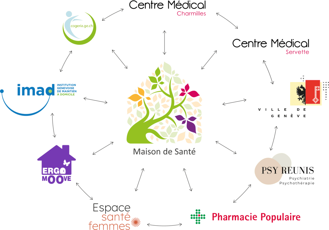 Notre Maison de Santé Charmilles s’appuie sur un réseau solide de partenaires afin d’assurer une prise en charge globale, cohérente et de qualité des patients et des patientes. Elle collabore étroitement avec les équipes de Magellan ainsi qu’avec divers acteurs du domaine de la santé dans le canton, tels que l’IMAD, les HUG ou encore certaines pharmacies.